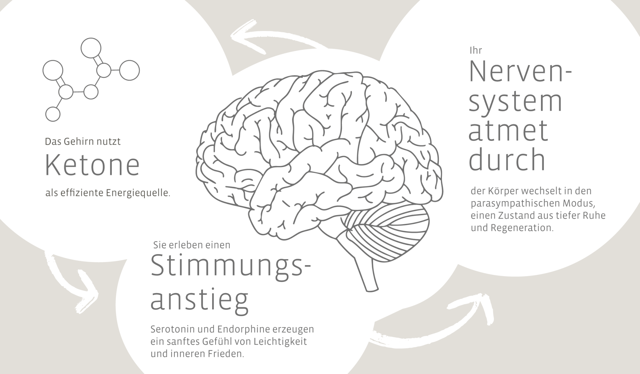 Wenn der Stoffwechsel von Glukose auf Fett wechselt, nutzt das Gehirn Ketone – stabil, effizient und ausgleichend. Unsere Daten zeigen: Ab dem zweiten Fastentag erreichen die meisten Gäste eine verlässliche Ketose und berichten über klare Konzentration.