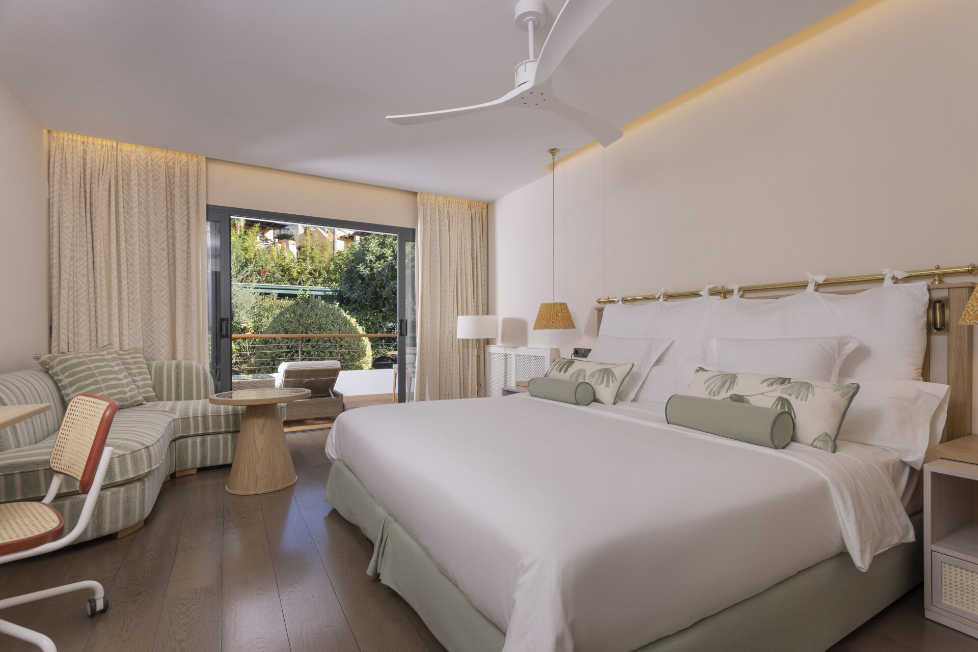 Nordausrichtung in der Villa María, 33,5 m², und Terrasse, 9,5 m², Doppelbett (210 x 200 cm), Badezimmer mit Badewanne, WC und integriertem Bidet.