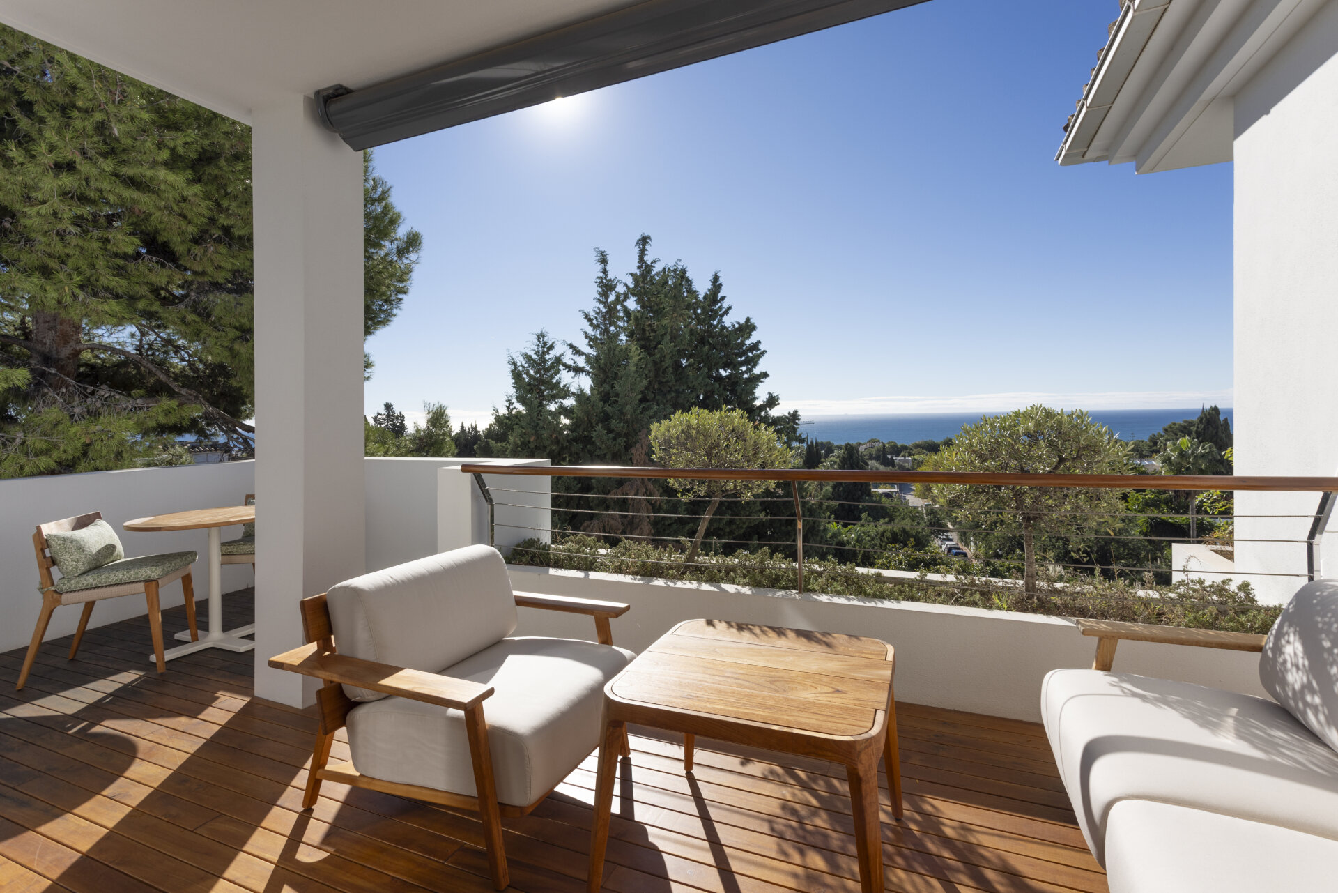 Suite Bellavista: 68 m² und fast rundumlaufende Terrasse, 48 m², mit Blick auf Meer und Berge.